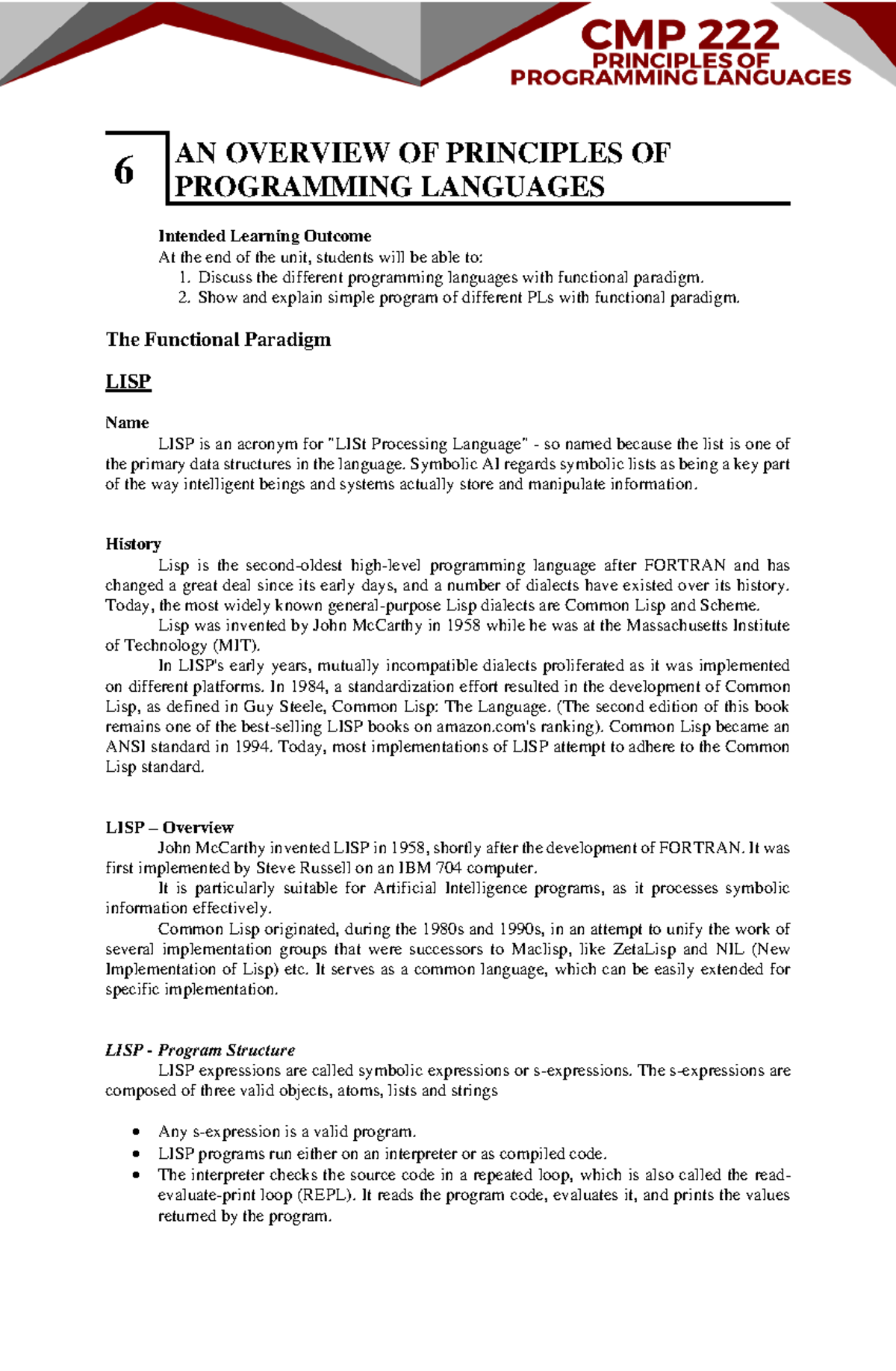 Module 6 - CMP 221 Principles of Programming Languages - 6 AN OVERVIEW ...