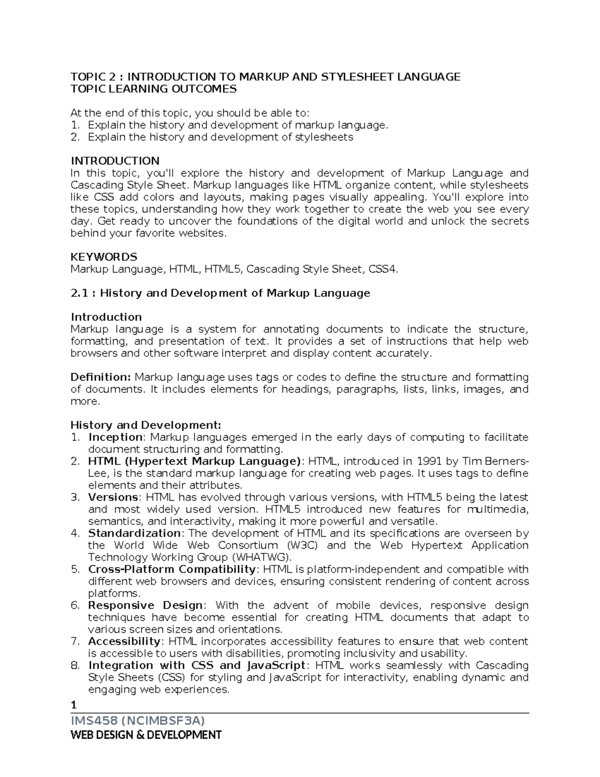 IMS458: Topic 2 - Intro to Markup & Stylesheet Languages - Studocu
