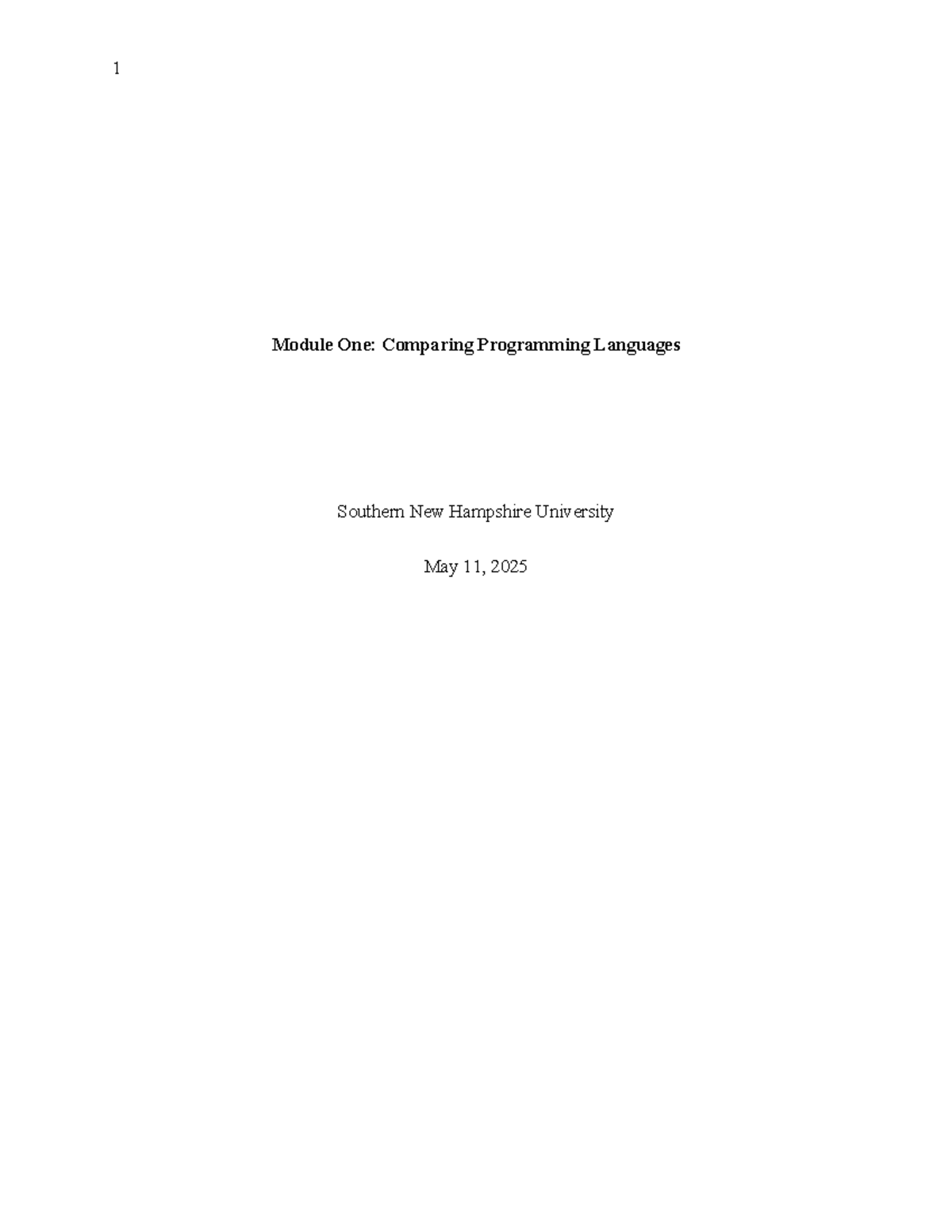 CS-210 Module One: Comparing Programming Languages Overview - Studocu