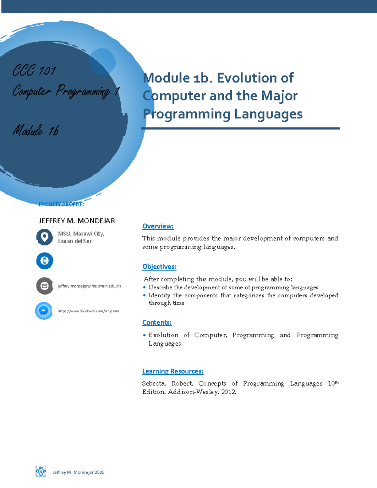 CCC 101 Module 1b: Evolution of Computers and Programming Languages ...