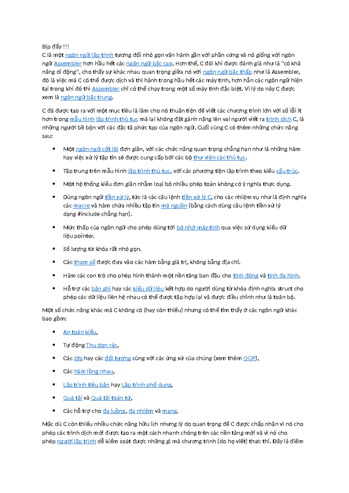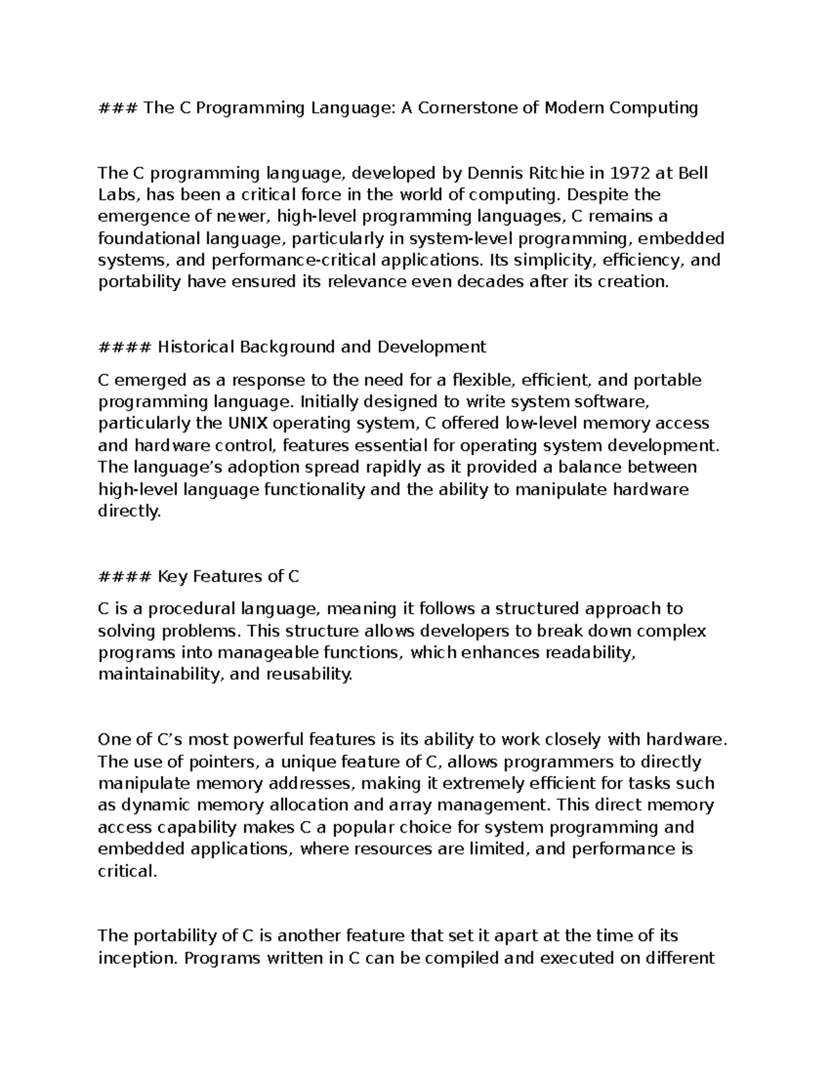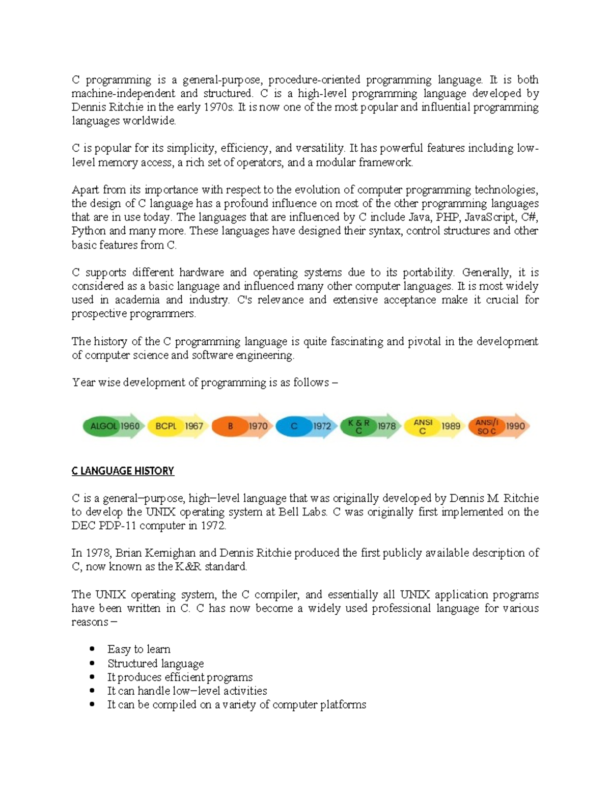C Programming Language Overview and Key Features (Ccode) - Studocu