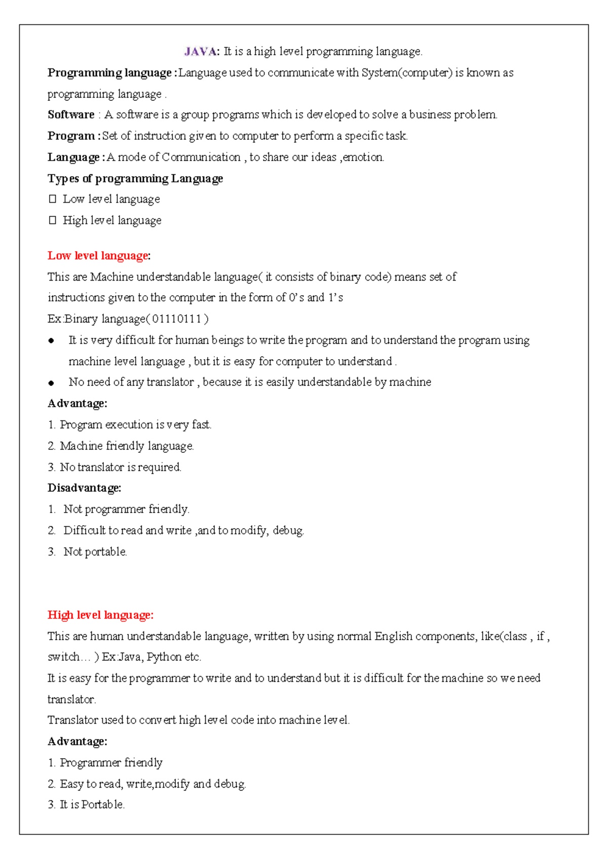 Programming Languages Overview: High vs Low Level (CS101) - Studocu