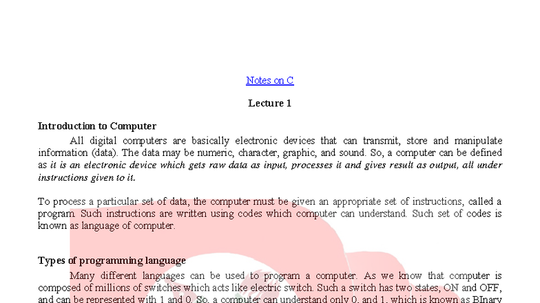 C Programming (C) Lecture 1: Introduction and Basics - Studocu