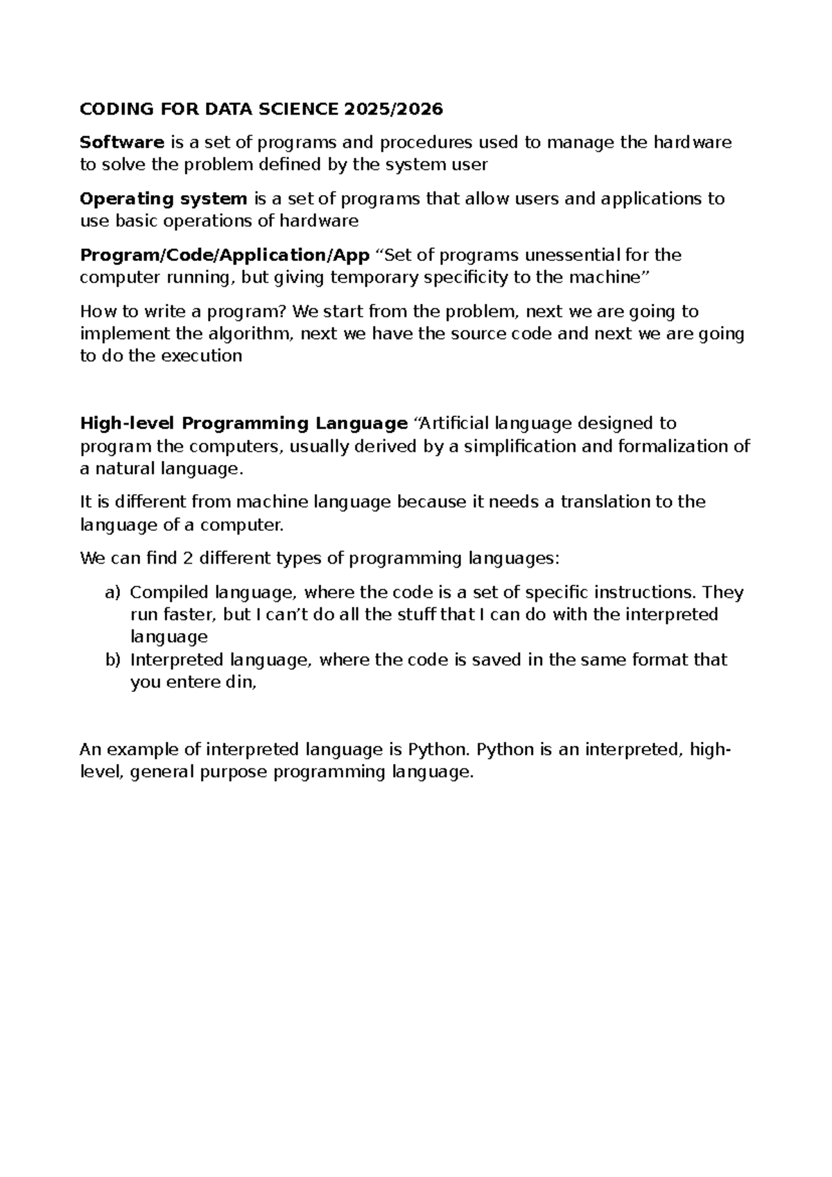CODING FOR DATA SCIENCE: Teoria and Programming Languages Overview ...
