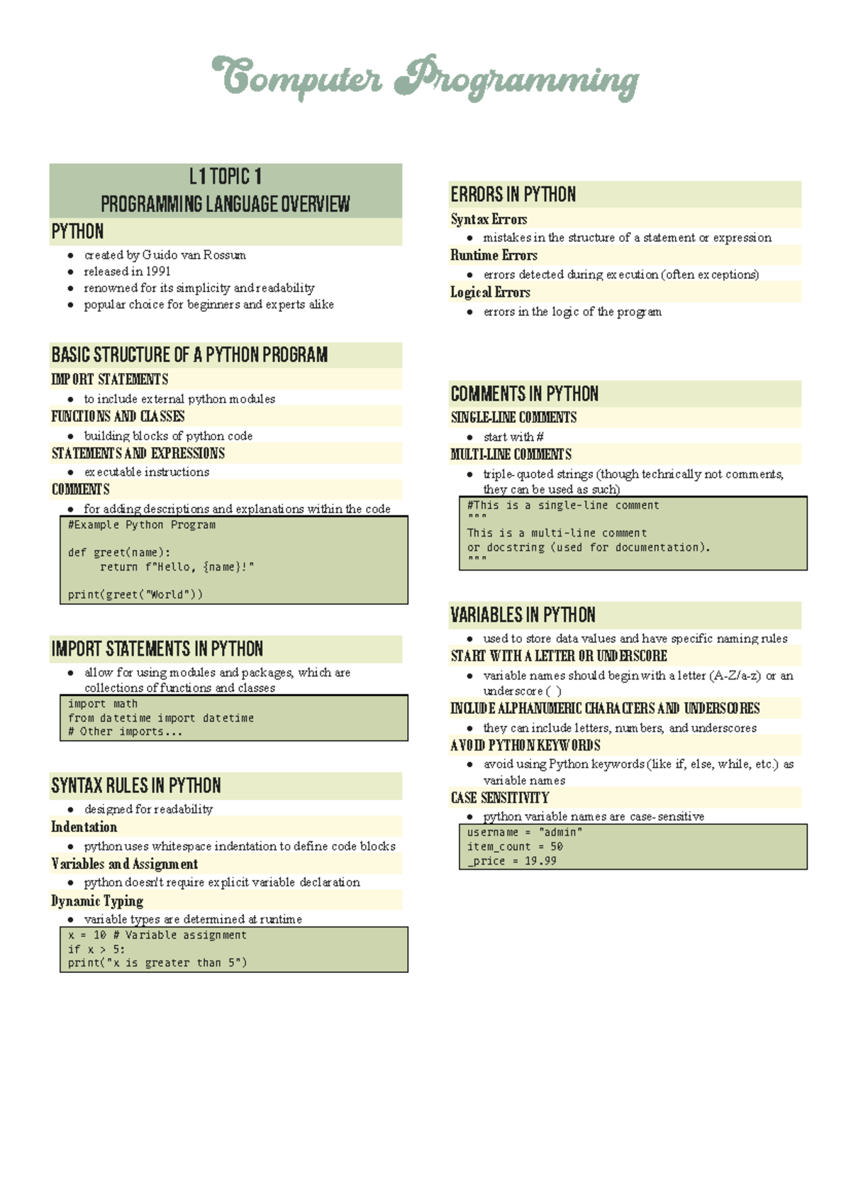Programming Languages Overview: C, C++, Java, Python - Studocu