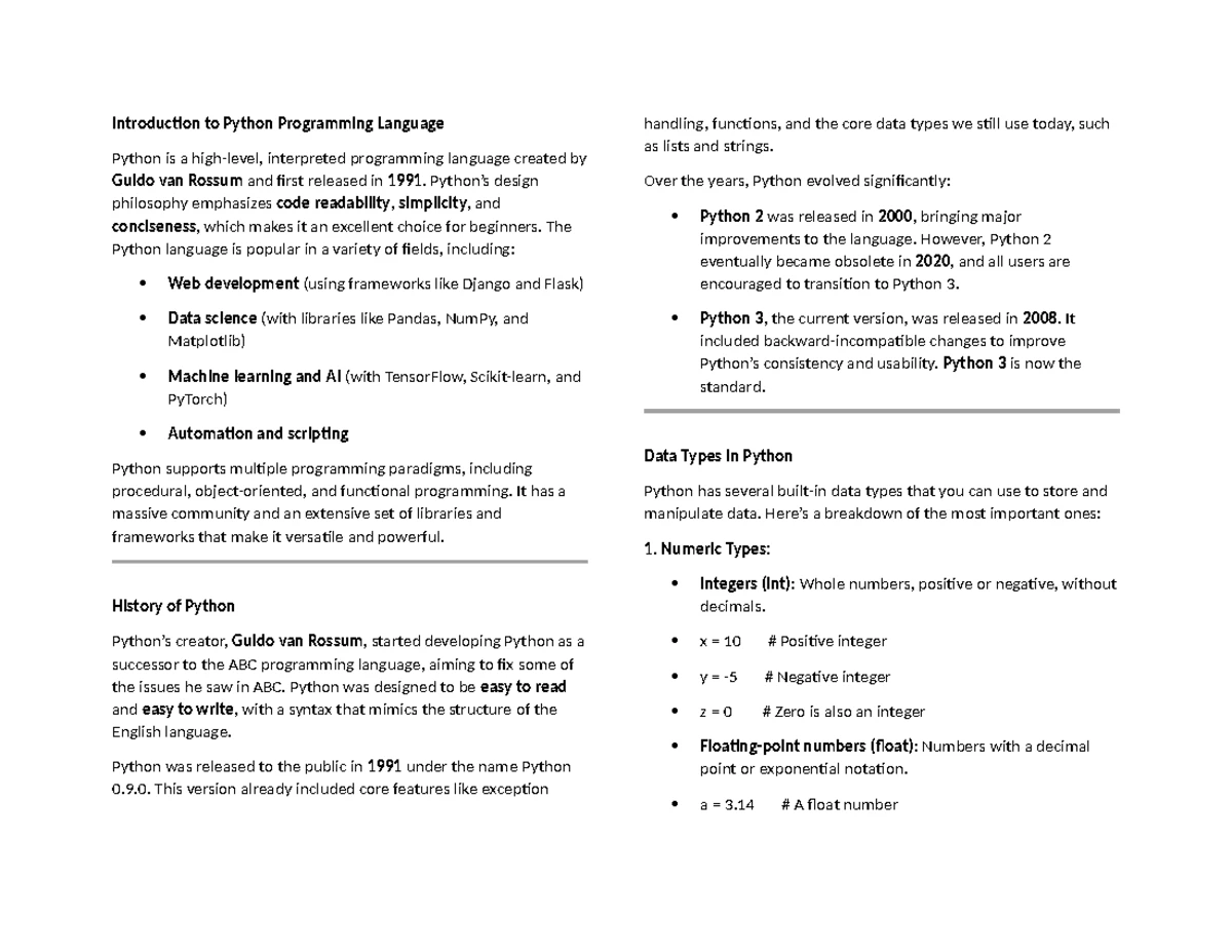 C Programming Language Overview and Applications Notes for PYTHON - Studocu
