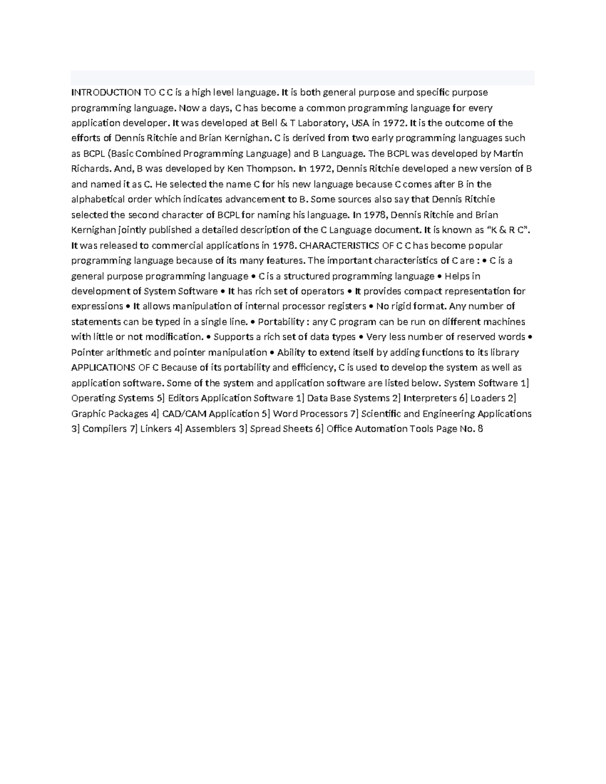 BCA PST Book 1 Sem - The C Programming Language Overview and Concepts ...