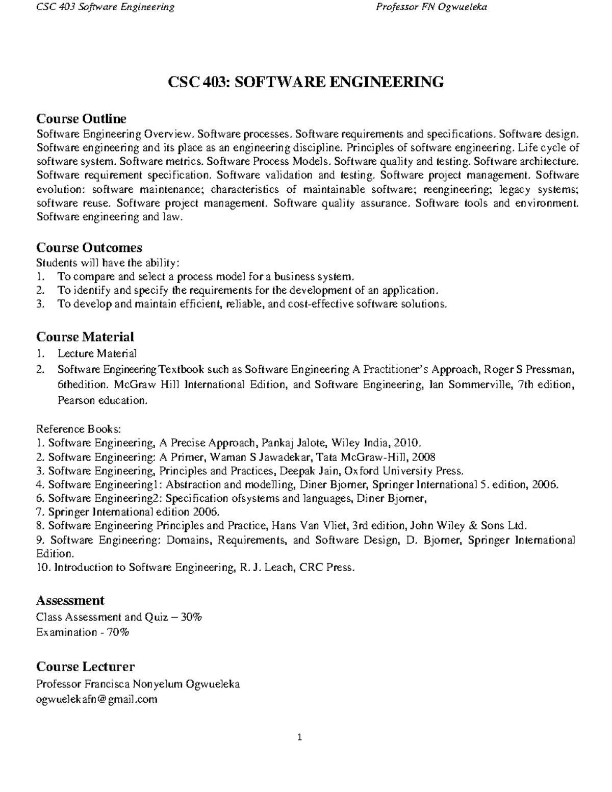 CSC 403 Software Engineering lecture note - CSC 403 : SOFTWARE ...