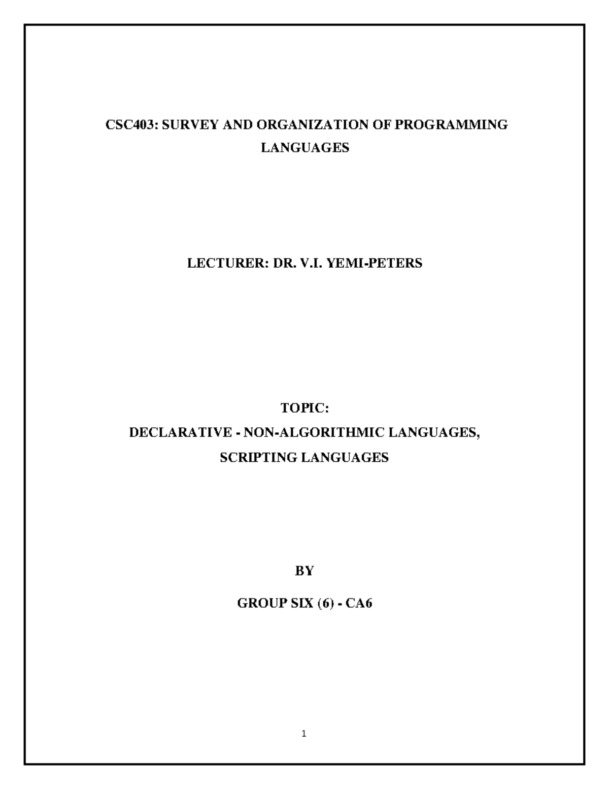 CSC 403 - Overview of Declarative and Scripting Programming Languages ...