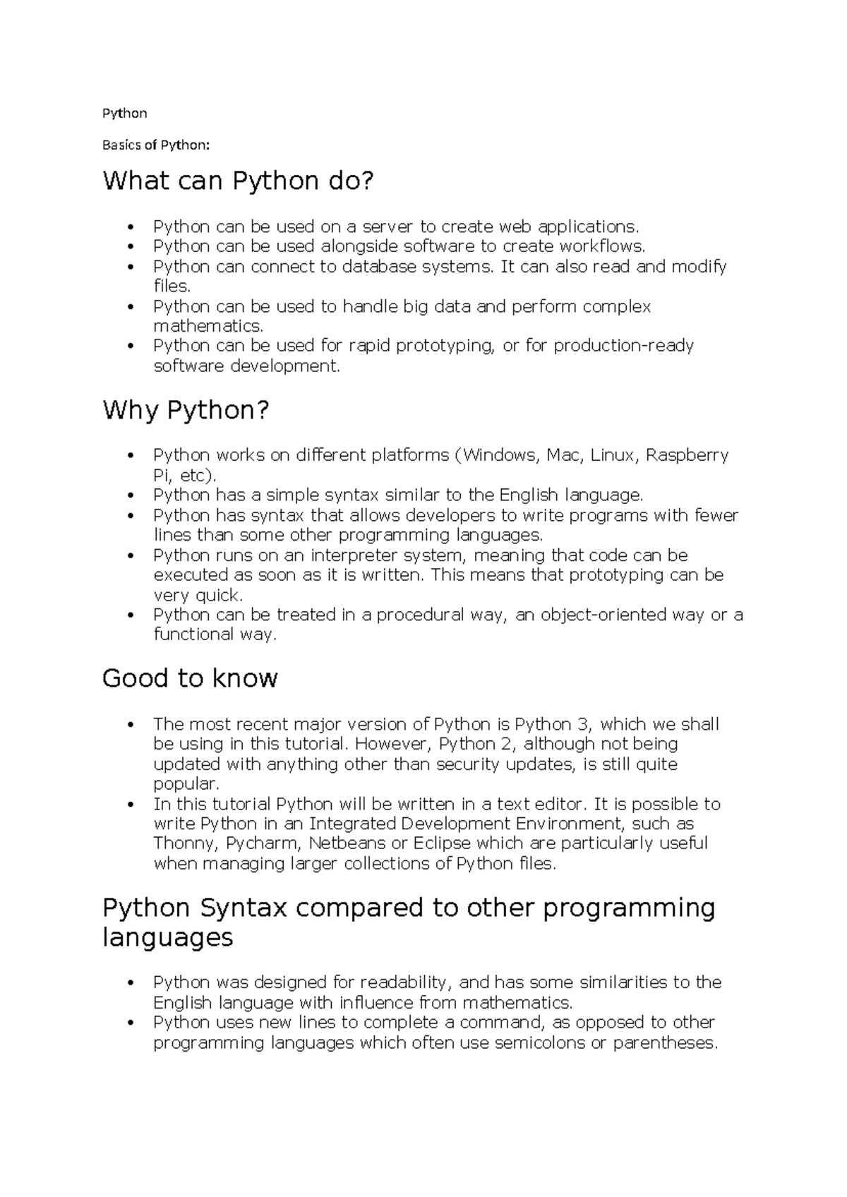 Python basics -new - What can Python do? Python can be used on a server ...