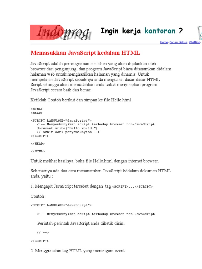 Memasukkan JavaScript ke dalam HTML | PDF