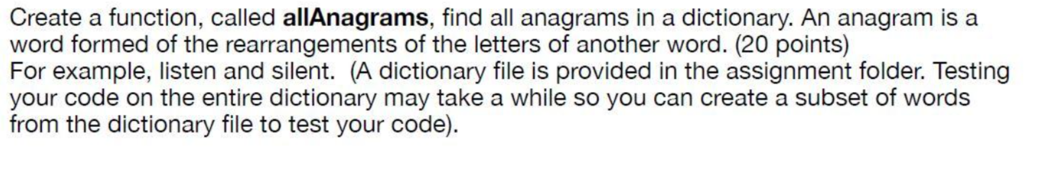 Solved Create a function, called allAnagrams, find all | Chegg.com