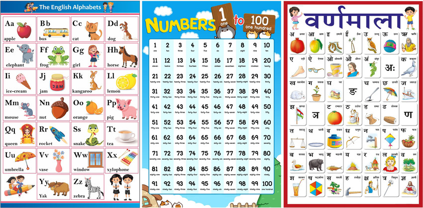 ABCD,1-100 Numbers And Hindi Varnamala Alphabet Charts Wall, 51% OFF