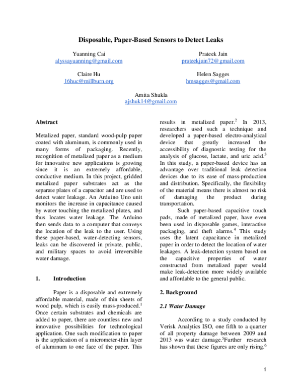 (PDF) Disposable , Paper-Based Sensors to Detect Leaks