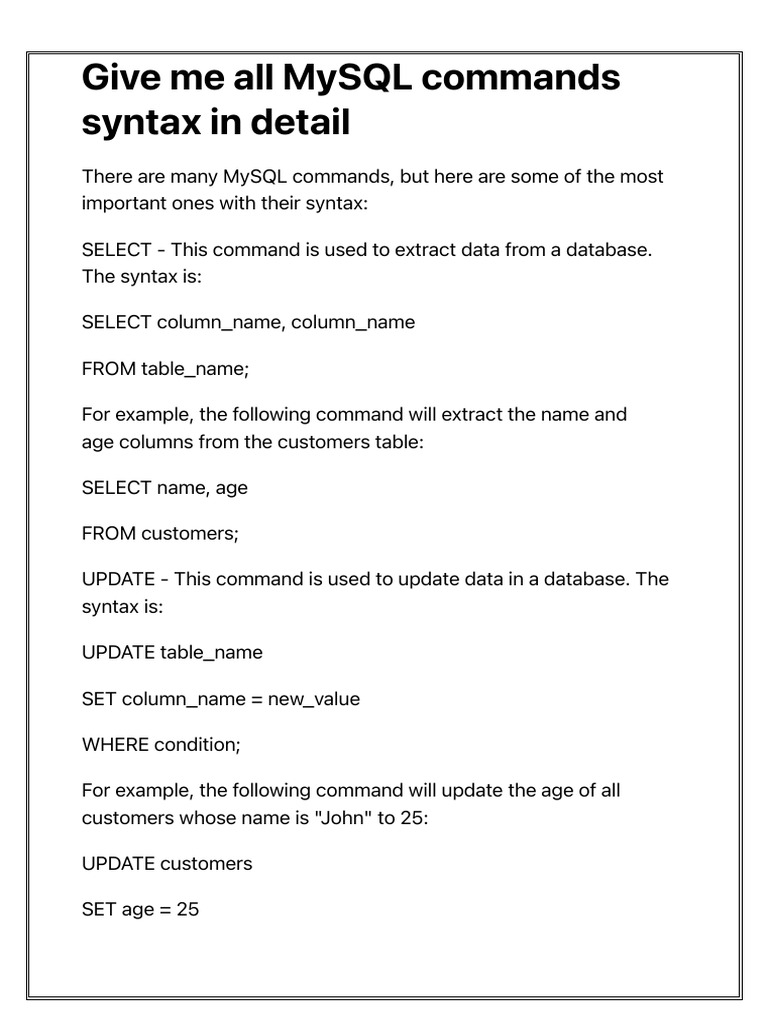 Give Me All MySQL Commands Syntax in Detail | PDF | Database Index ...