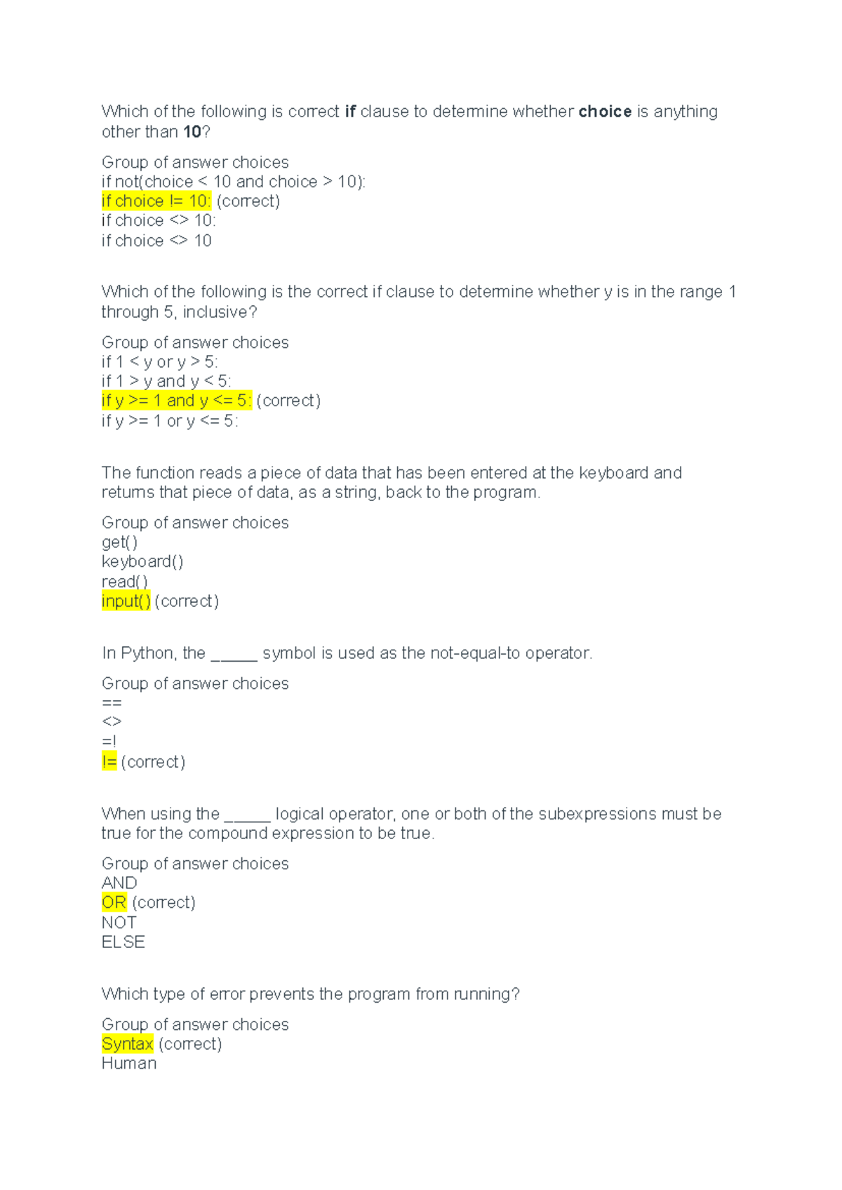 ICT133 Final Exam Quiz on Python Conditionals and Operators - Studocu