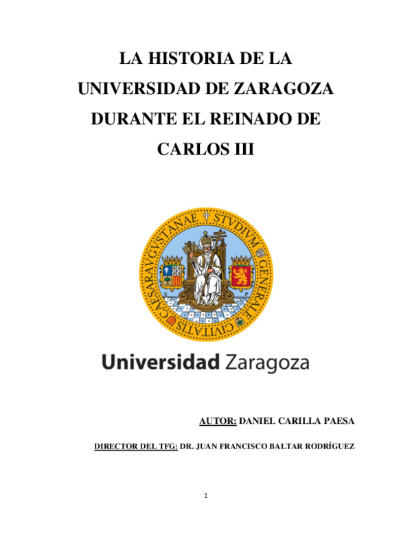 (PDF) La Universidad de Zaragoza durante el reinado de Carlos III
