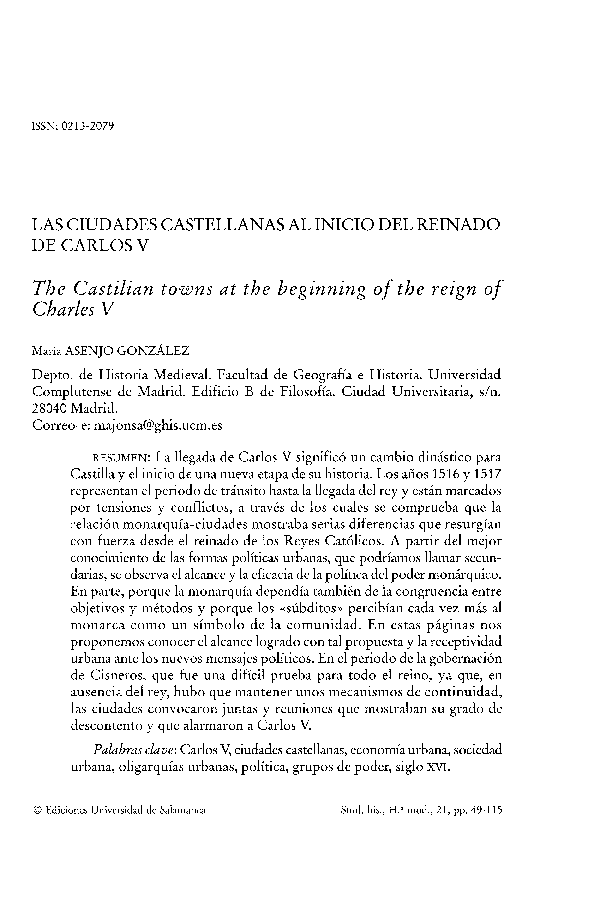 (PDF) Las ciudades castellanas al inicio del reinado de Carlos V