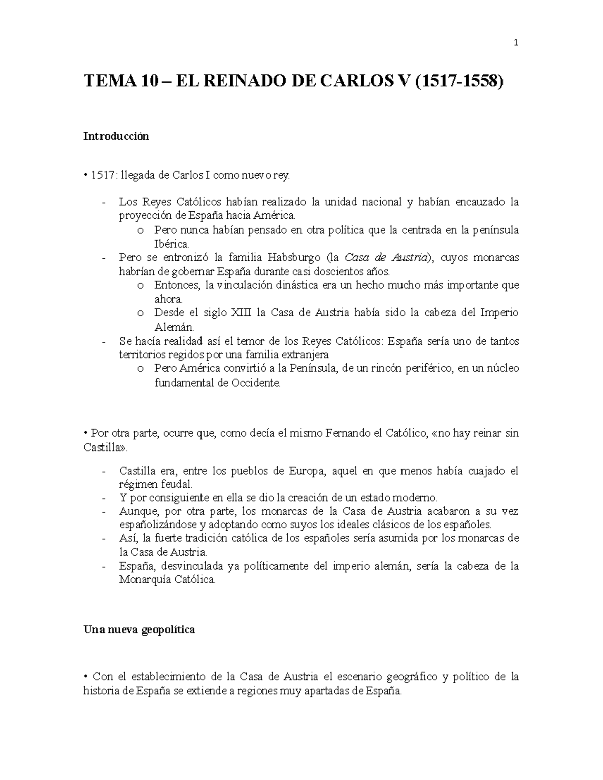 Tema 5 - Carlos V - TEMA 10 – EL REINADO DE CARLOS V (1517-1558 ...