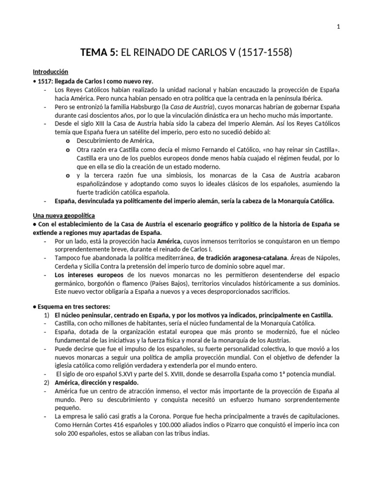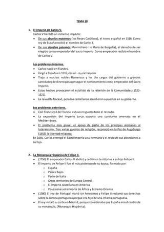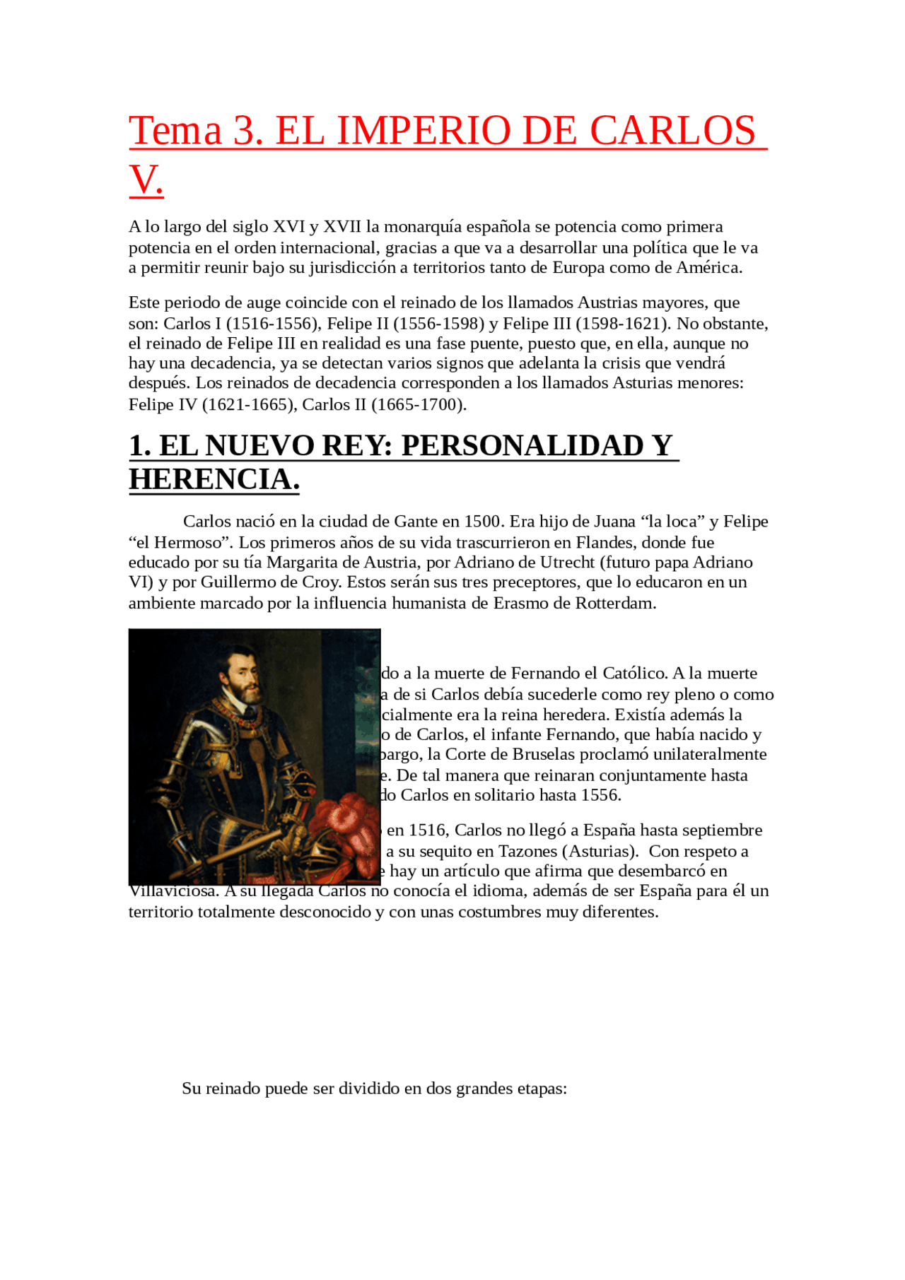 Tema 3. El imperio de Carlos V | Apuntes de Historia | Docsity