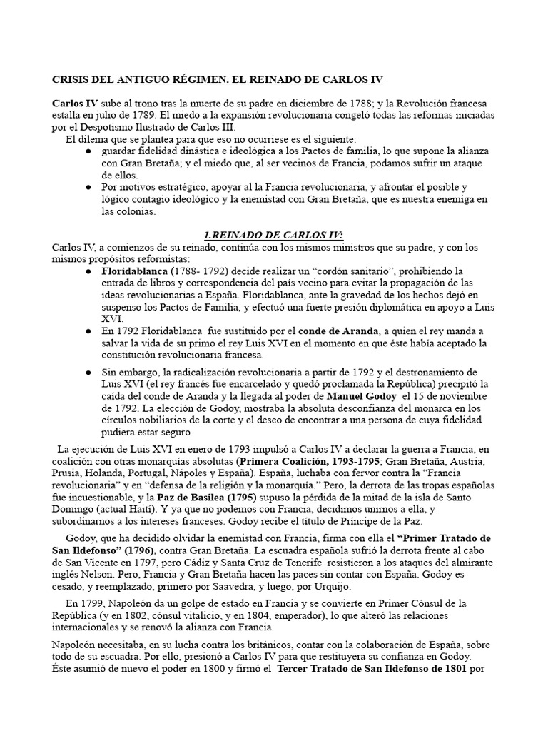 4.1. El reinado de Carlos IV. La Guerra de la Independencia. | PDF ...