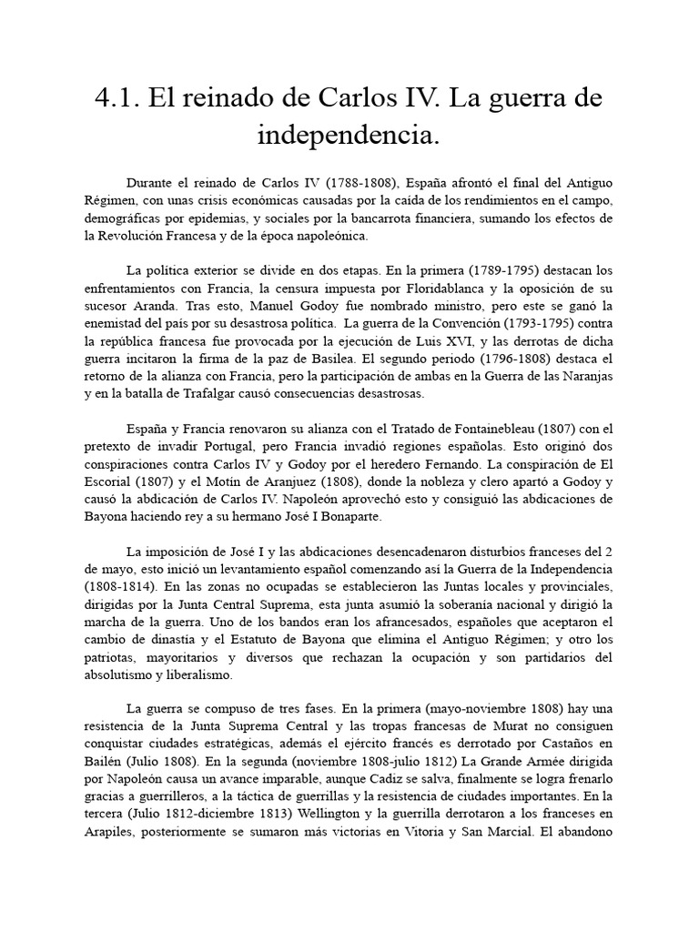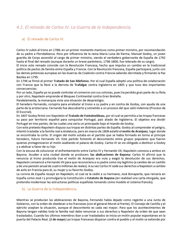 4.1. El Reinado de Carlos IV. La Guerra de Independencia | PDF | Guerra ...