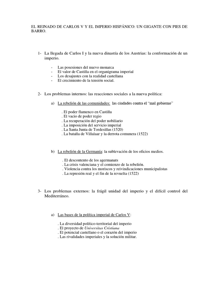 Esquema Reinado Carlos V | PDF | Imperio español | Santo Imperio Romano