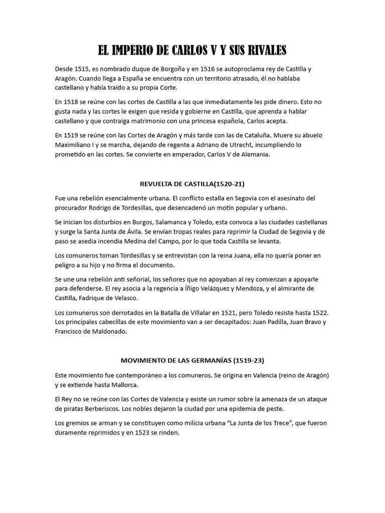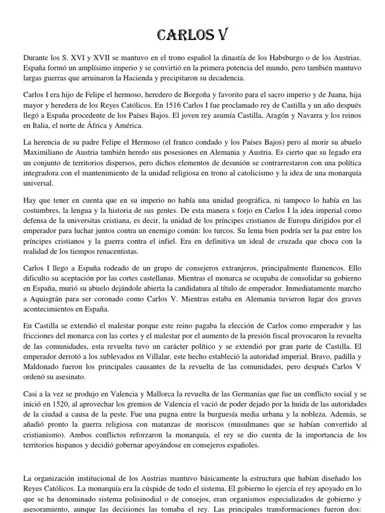 Resumen Carlos V | PDF | Santo Imperio Romano | Imperio español