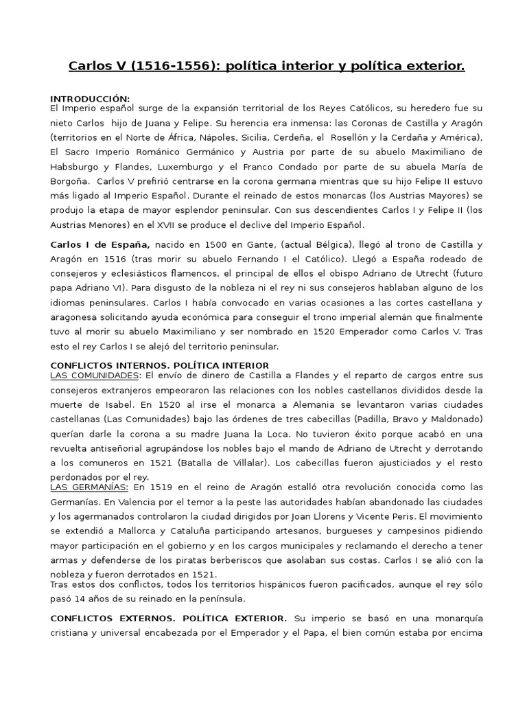 Carlos V: Política Interior y Exterior del Imperio | PDF | Imperio ...
