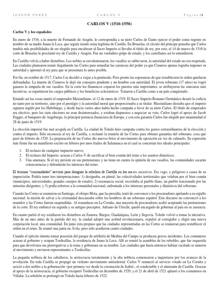(PDF) El reinado de Carlos V: El movimiento comunero y las Germanías