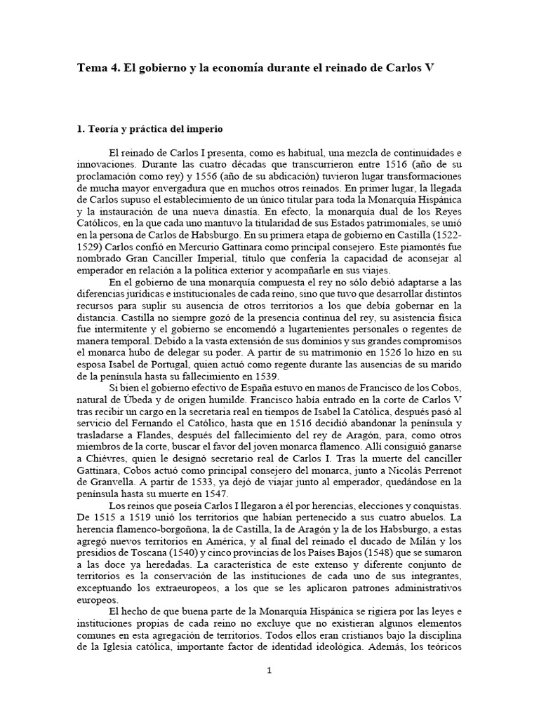 Tema 4 El gobierno y la economía durante el reinado de Carlos V | PDF ...