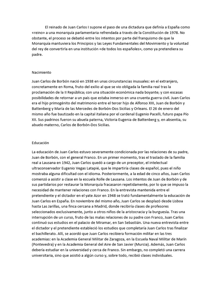 El Reinado de Juan Carlos I Supone El Paso de Una Dictadura Que Definía ...