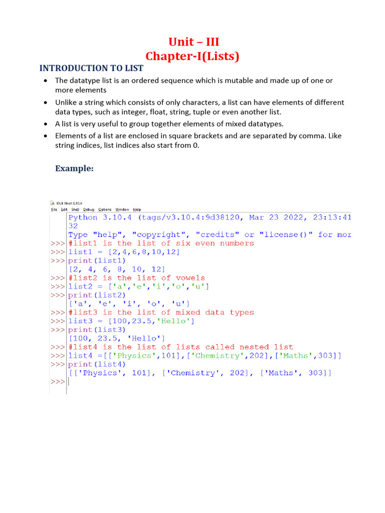 Unit 3 Python List | PDF