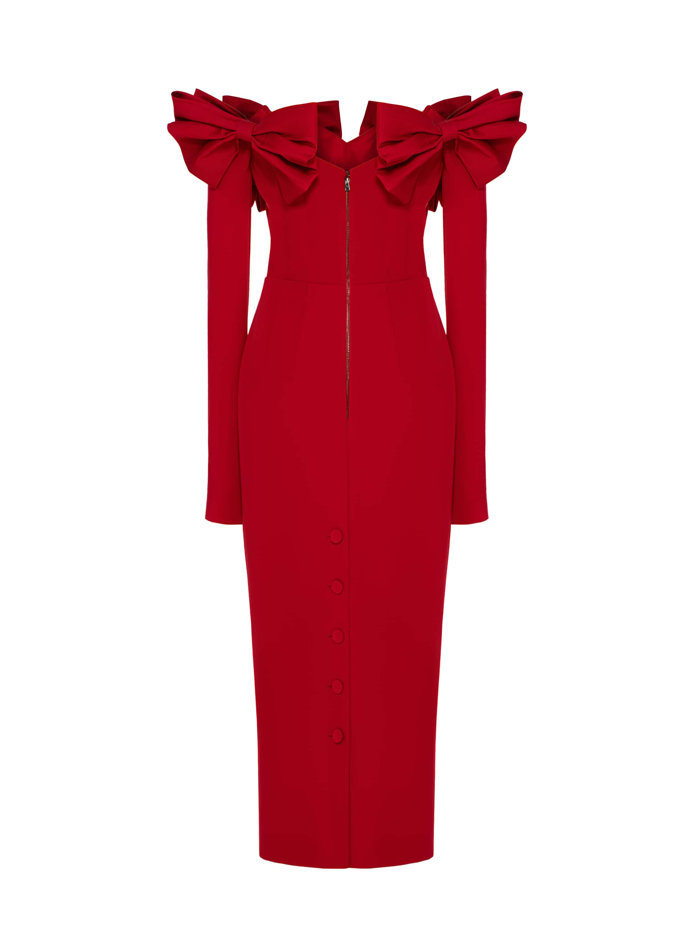 Красное платье-миди из шелка с бантами, артикул YD050102.1399.N30.05.00 ...