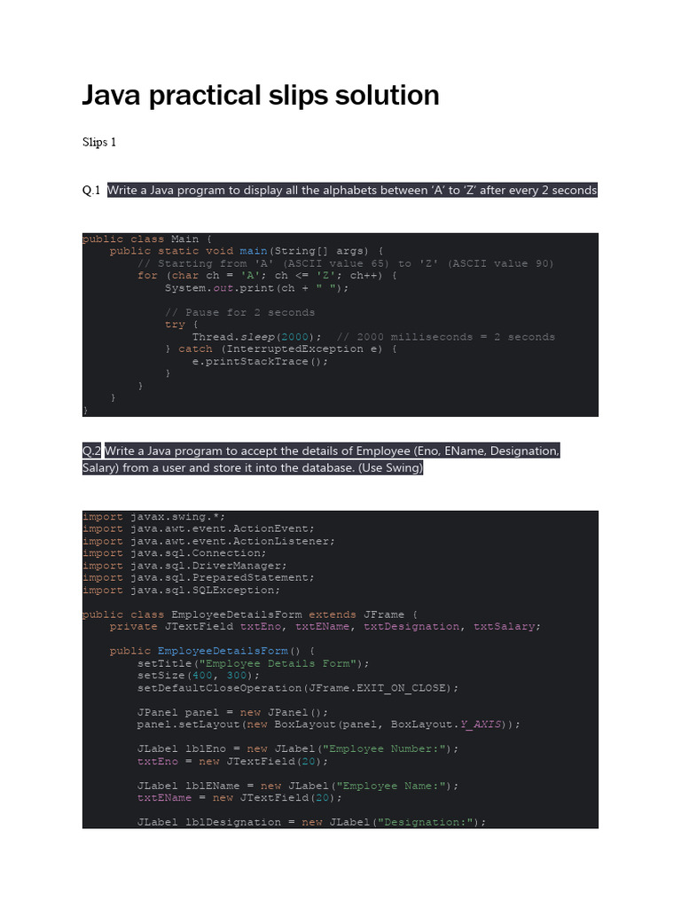 Java Practical Slips Solution | PDF | Software Development | Object ...