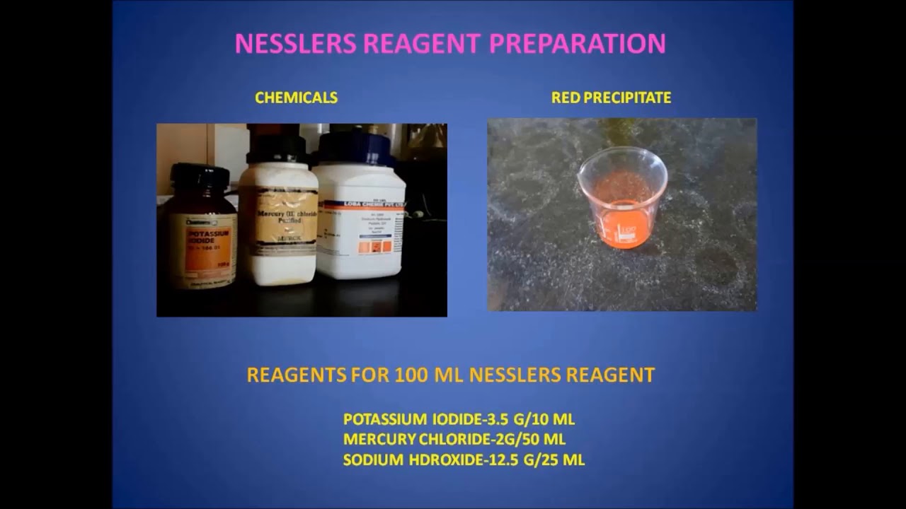 Based on this image's title: “Nesslers Reagent : Preparation and Testing - YouTube”