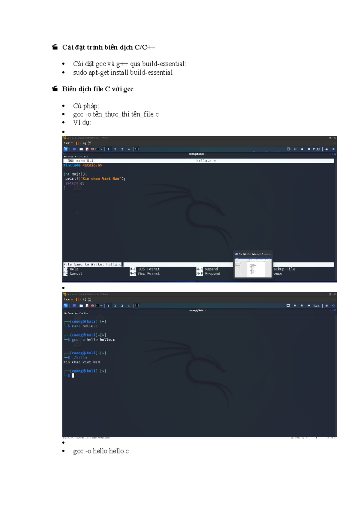 Tạo một chương trình đơn giản và giải thích cơ chế biên dịch và thông ...