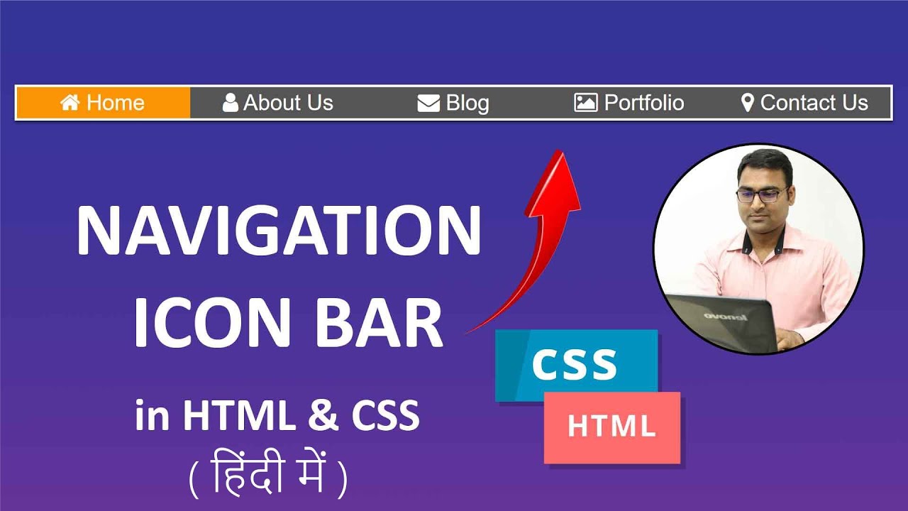 Navigation Bar With Icons Using HTML & CSS | HTML CSS Navigation Bar ...
