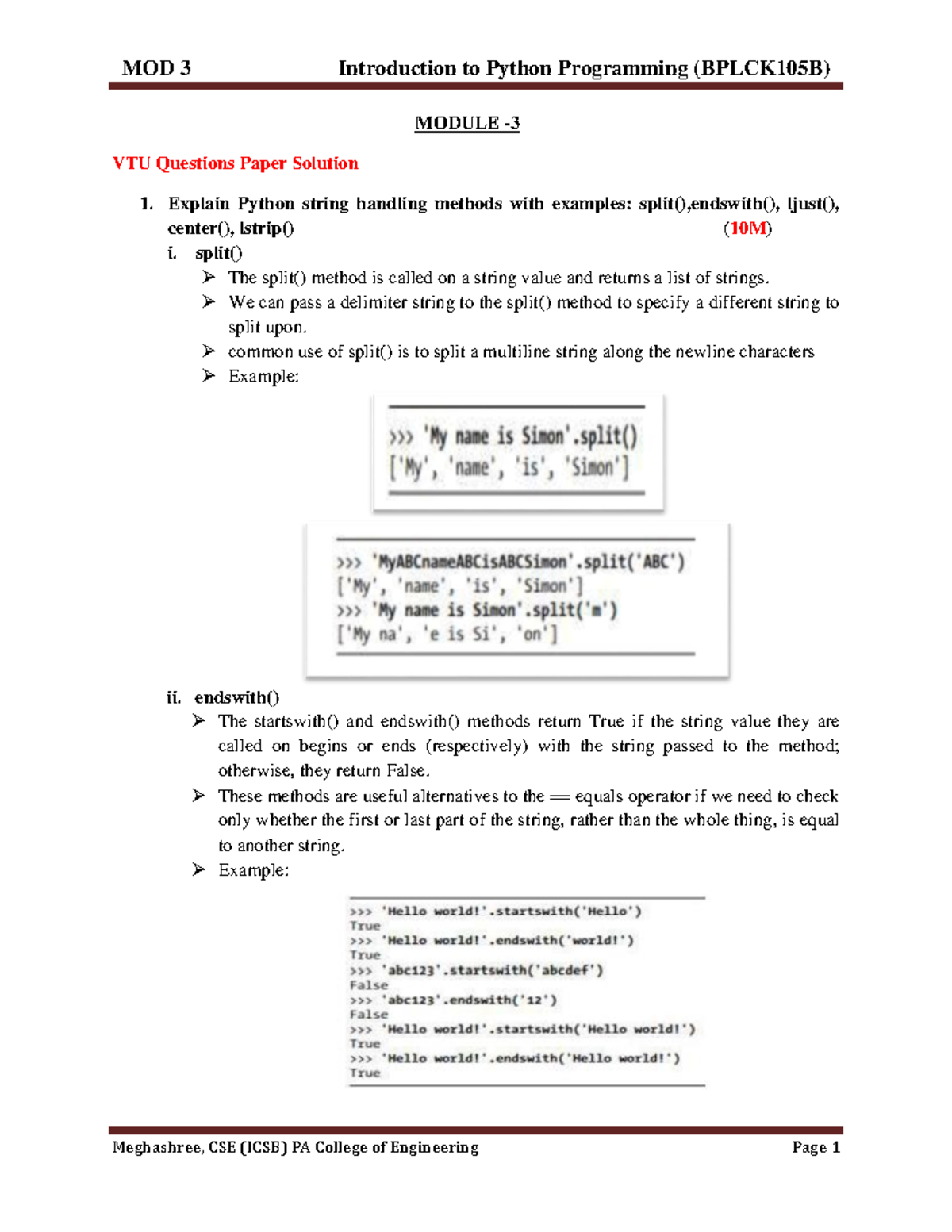 VTU MOD 3 Exam Solutions: Python String Handling & File Operations ...