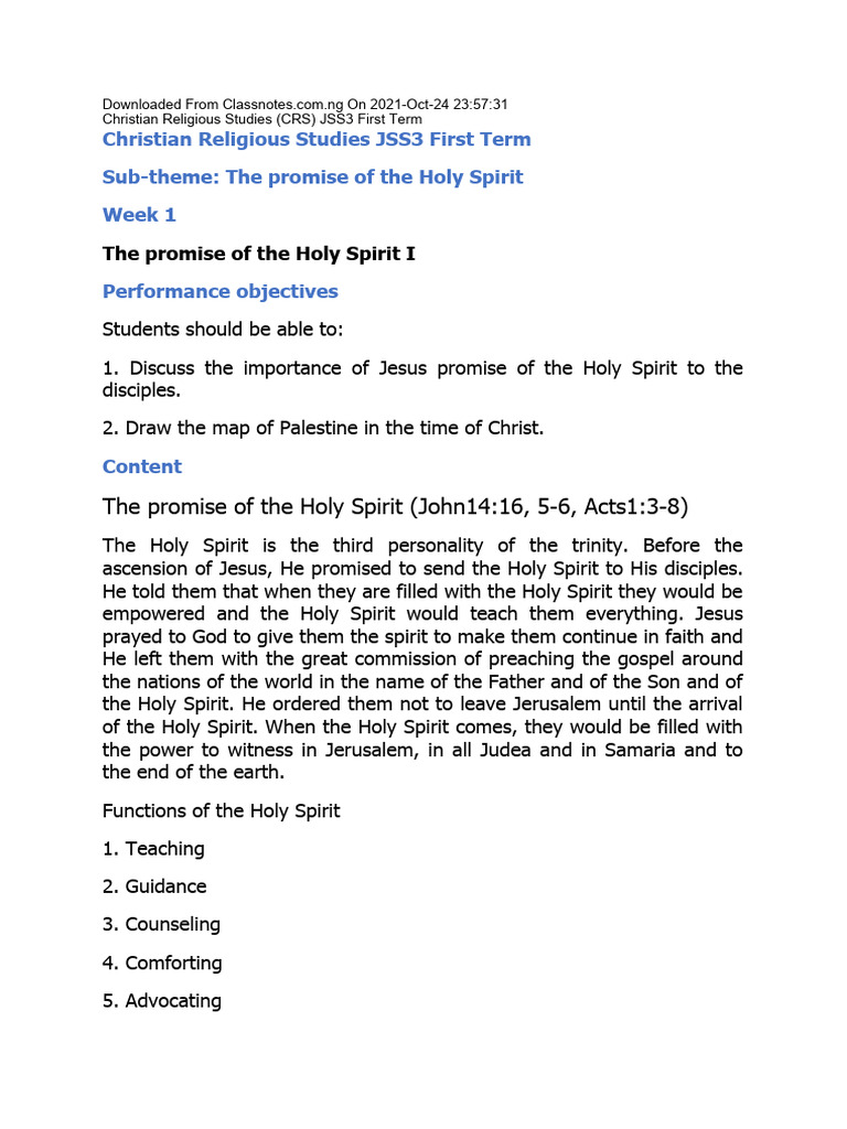 JSS3 Christian Studies Lesson Notes | 1st, 2nd and 3rd Term | PDF ...