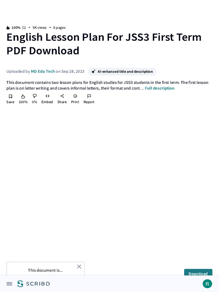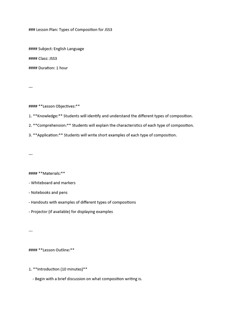 English Lesson Plan For JSS3 First Term PDF Download: MD Edu Tech | PDF ...