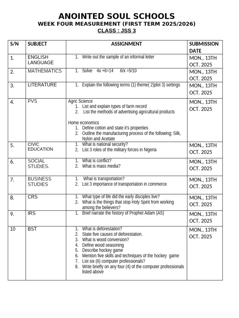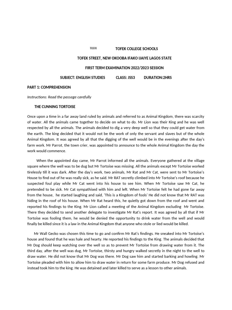 JSS3 FIRST TERM EXAM QUESTION | PDF