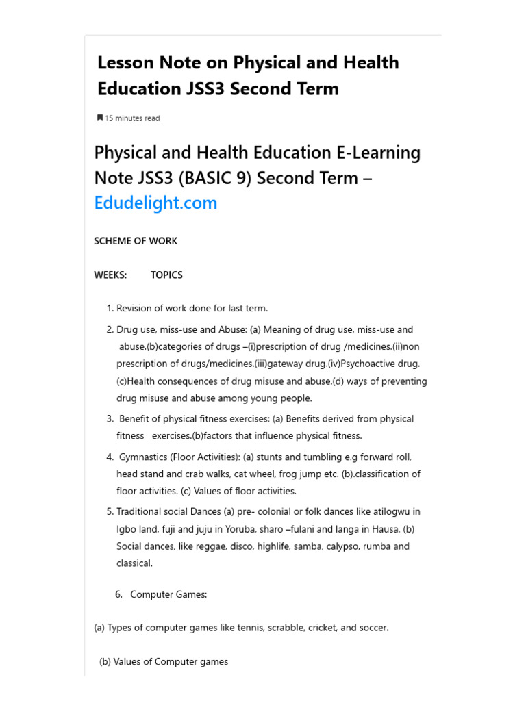 Lesson Note On Physical and Health Education JSS3 Third Term | PDF ...