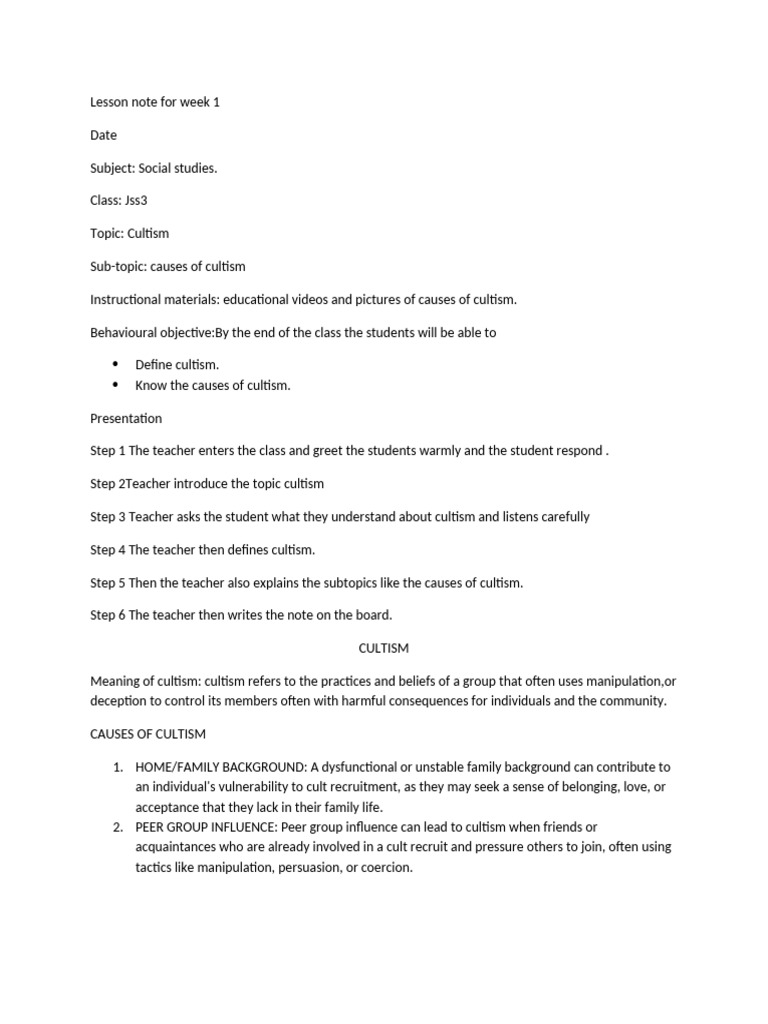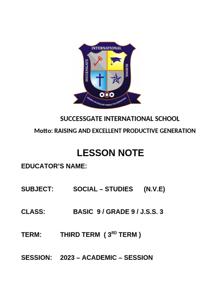 Based on this image's title: “Lesson Note For jss3 First Term | PDF”