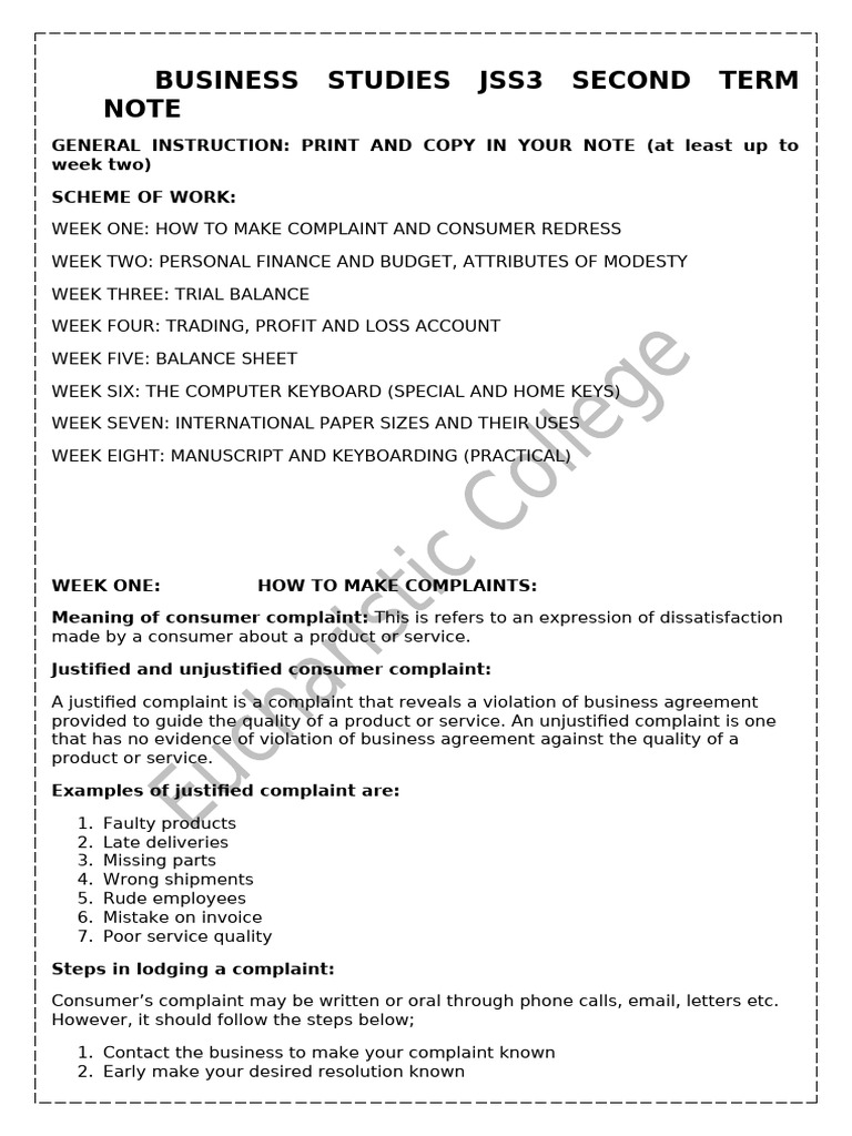 Business Studies Lesson Notes for JSS3 (Basic 9) First Term ...