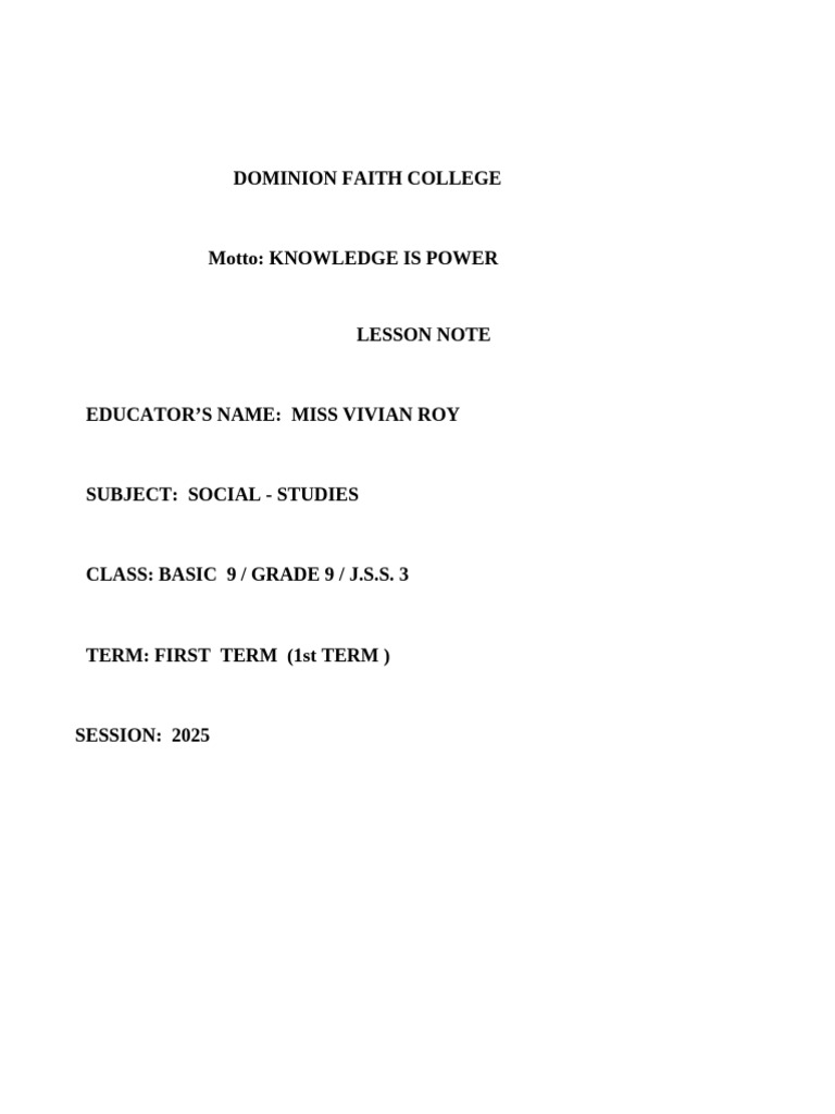 Social Studies Note jss3 | PDF | Morality | Teachers