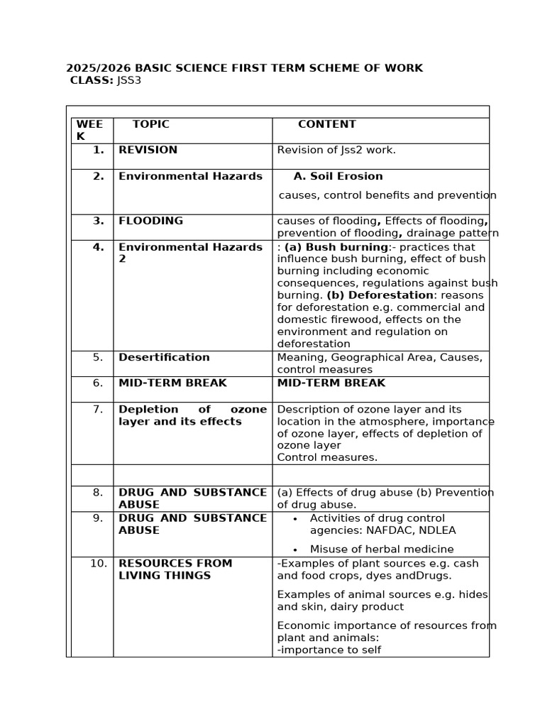 JSS3 Security Education Scheme of Work-PDF|1st,2nd,&3rd Term | - SyllabusNG