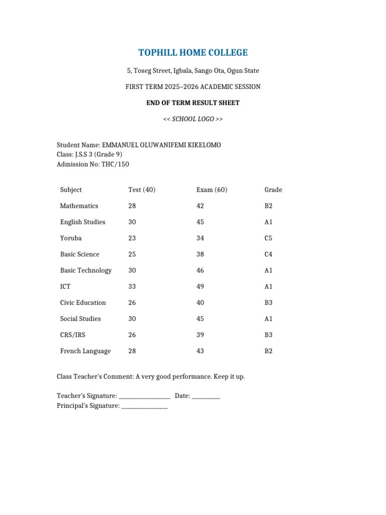 JSS3 First Term 2025 2026 20 Colored Result Formats | PDF | Science