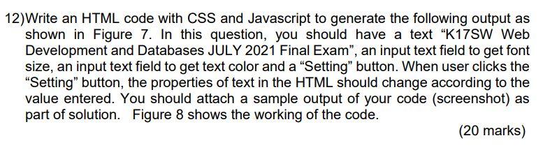 Solved 12)Write an HTML code with CSS and Javascript to | Chegg.com