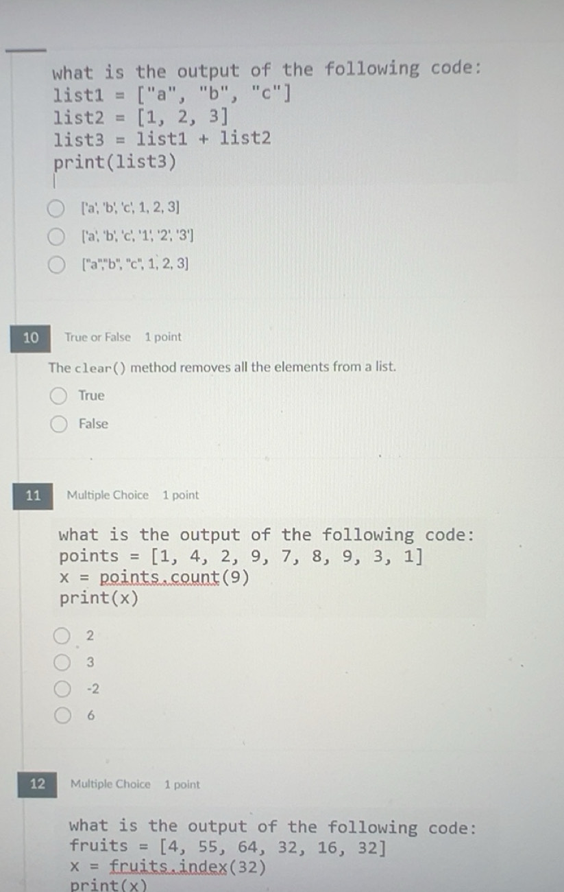 Solved: what is the output of the following code: list1=[''a'', "b", "c ...